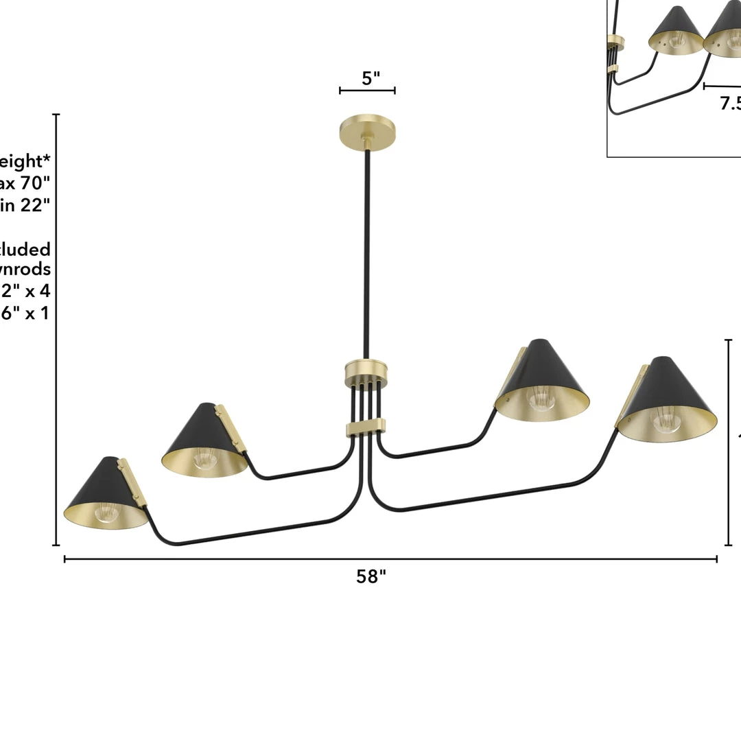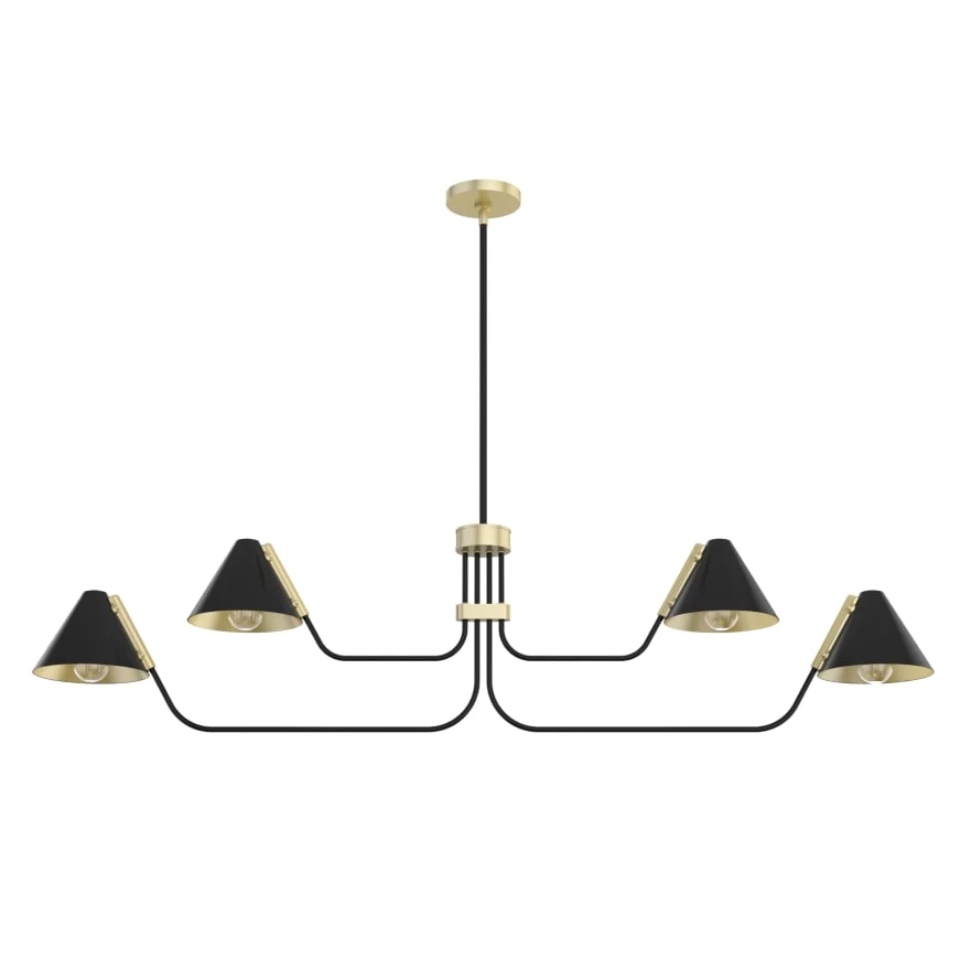 The perfect balance of minimalist and lustrous. The pop of metallic in the Giovana’s light shades is the perfect complement to the linear chandelier’s classic finishes. This modern minimalist chandelier’s mid-century inspired light shades are connected by slender arms for a look that’s playful and beautiful.