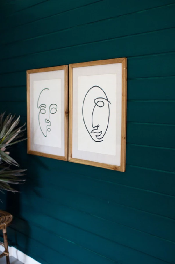 Set of 2 face art prints under glass with wood frame. 22″ x 27.5″t