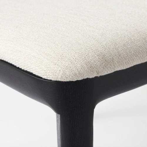 This dining chair features a fusion of textures balanced by clean lines and a simple design. A cane back sits within a solid Beech wood frame that runs into slender tapered legs and accommodates a padded fabric seat.