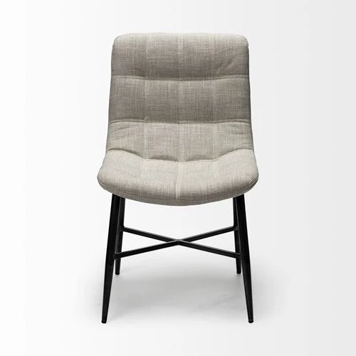 Featuring a beige-colored, fabric-covered, solid-back seat with intricate square stitching, the Bar dining chair is a stylish dining chair that looks stunning when paired with most dining tables. The posh seating on the Bar dining chair I is supported by four, matte-black toned metal legs ensuring stability without compromising on style. (Sold as a pair)