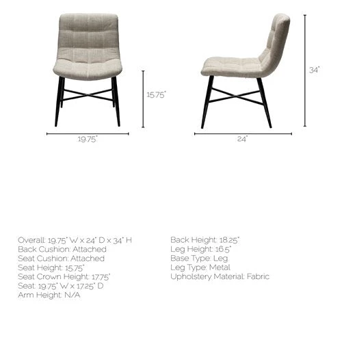 With a seat height of 15.57″, the Bar dining chair measures a total of 24.0″ wide by 34.0″ high.Â
