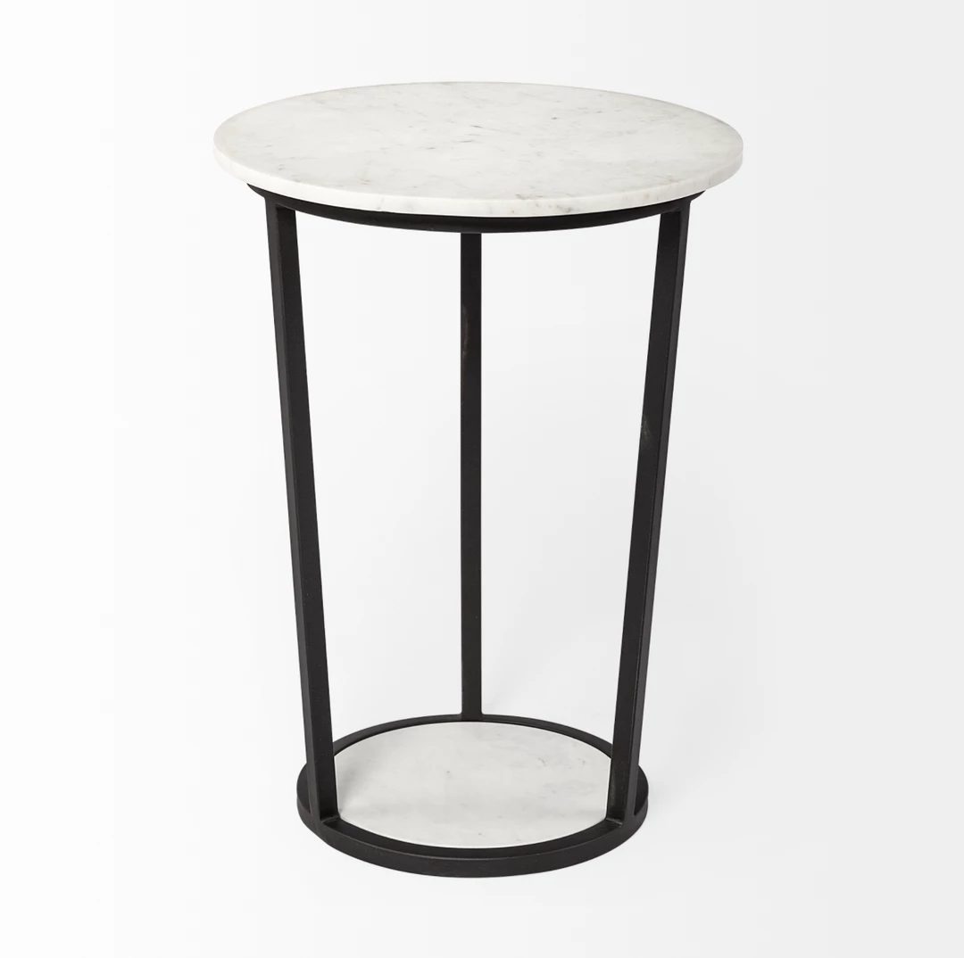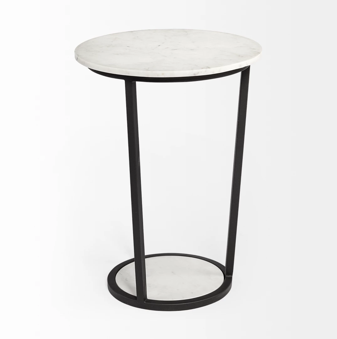 Featuring a round, marble top that looks stunning, the Bola is a metal accent table that is sure to make your space look ritzy. The beautiful, natural white marble top is supported by an angular, tapering frame that is polished in a matte-black tone. The Bola, with its contrasting marble and metal tones makes for a great choice of accent furniture.Â