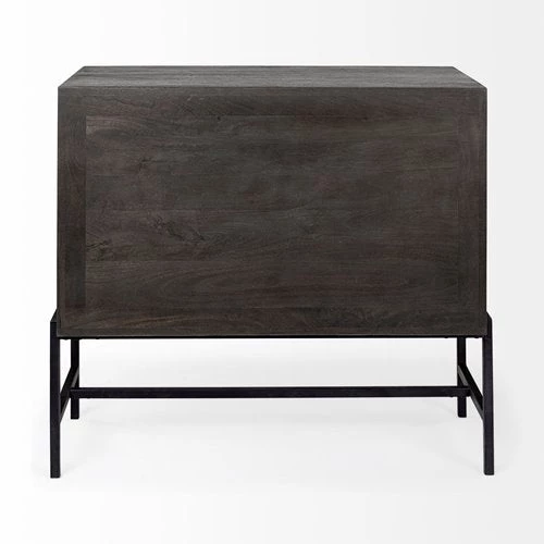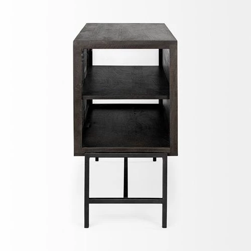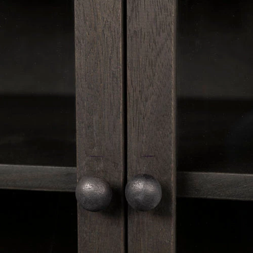 Featuring a rectangular chassis that is meticulously crafted from premium, black-toned Indian Mango wood, the Borro is a spectacular cabinet that is just as functional as it is visually appealing. Equipped with glass side panels and two clear, glass-lined doors with removable shelves behind them, the Borro offers ample storage space for a plethora of everyday items and is also great for displaying a mix of your favorite decorative objects. The wooden chassis is perched atop a matte-black toned, four-legged solid iron base with cross bracing which not only adds to the visuals of this piece, but also stabilizes the cabinet to perfection.Â