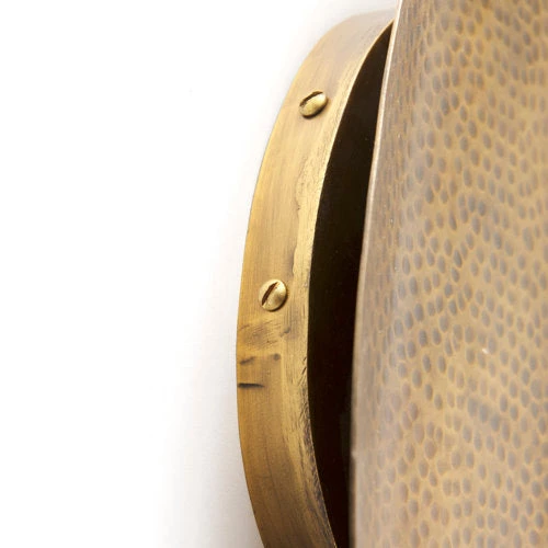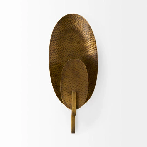 The Cici is a large wall sconce that is ready to make an entrance. The Cici measures 7.0″ long by 5.3″ wide by 17.0″ high. Carefully crafted from metal, making it a decorative piece that will last a lifetime. Finished in a rich metallic gold color, and features unique hammered texture that give it a tastefully worn-in look and feel. The Cici has a tropical yet modern inspired feel to it, making it the perfect way to fill empty wall space in modern and contemporary designed spaces. The gold finish draws the eye in, and is an instant head turner and conversation piece.
