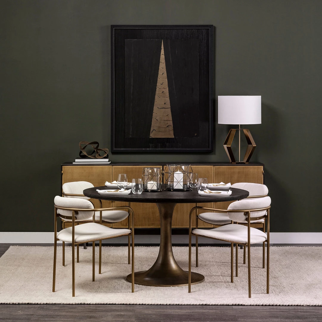 McLeod is a round dining table made from solid Indian Mango wood with a tapering solid iron base.