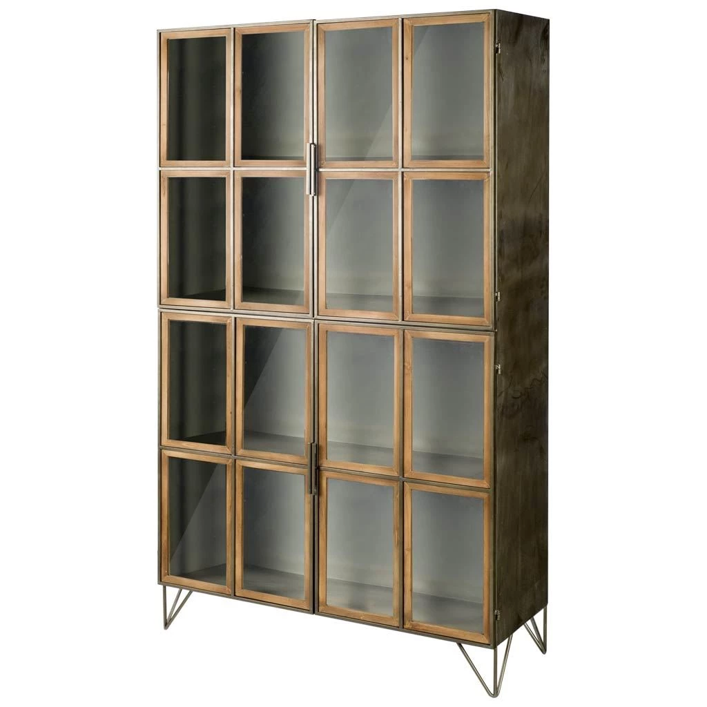 Featuring a sturdy, metallic frame and chassis, the Pandora is a stunning display cabinet that is built to stand the test of time. The sturdy construction is complemented by a two-tone neutral brown finish that is guaranteed to elevate your space. The metallic frame is finished in a medium brown tone and the wooden door fronts are finished in a natural brown polish.Â