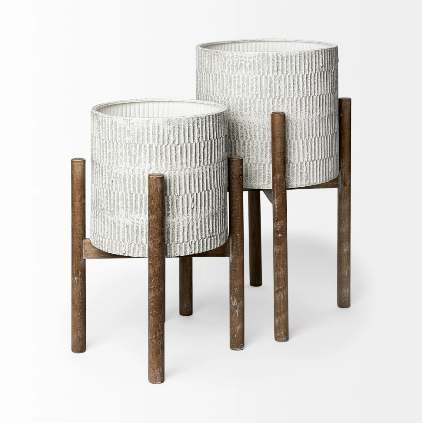 Sleek Design:Â The Groot plant stand consist of eggshell-toned metal cylinders with a wooden stand, allowing it to hold most plants of your choice.Â