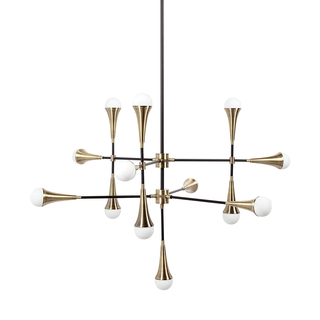 Featuring an all-metal frame finished in a matte-black tone that complements the champagne or gold accents on the bulb shades, the Delaney is a posh lighting fixture that boasts of a superior polish guaranteed to add a touch of panache to any space and setting.Â