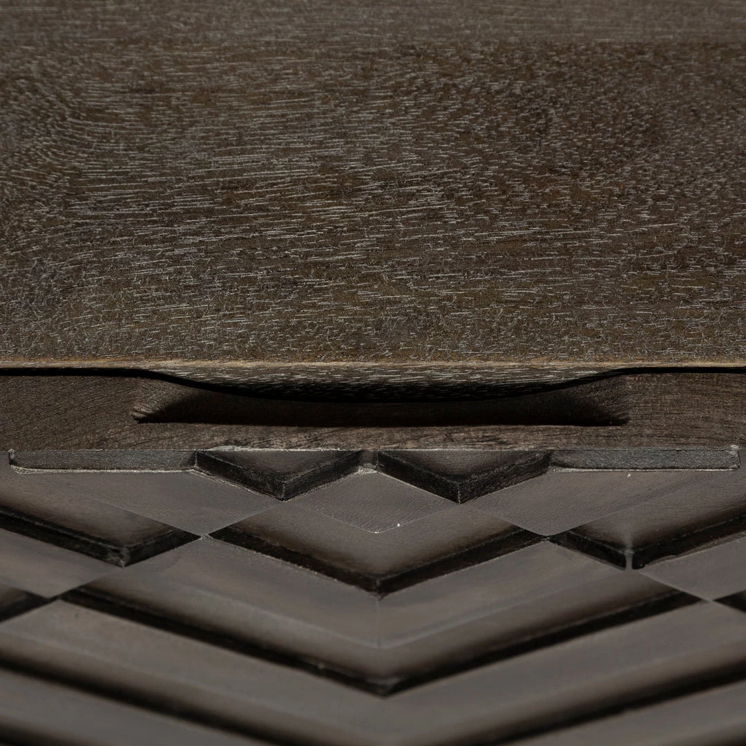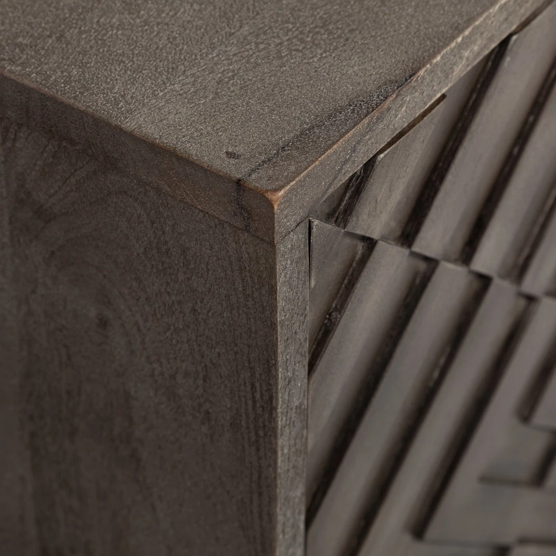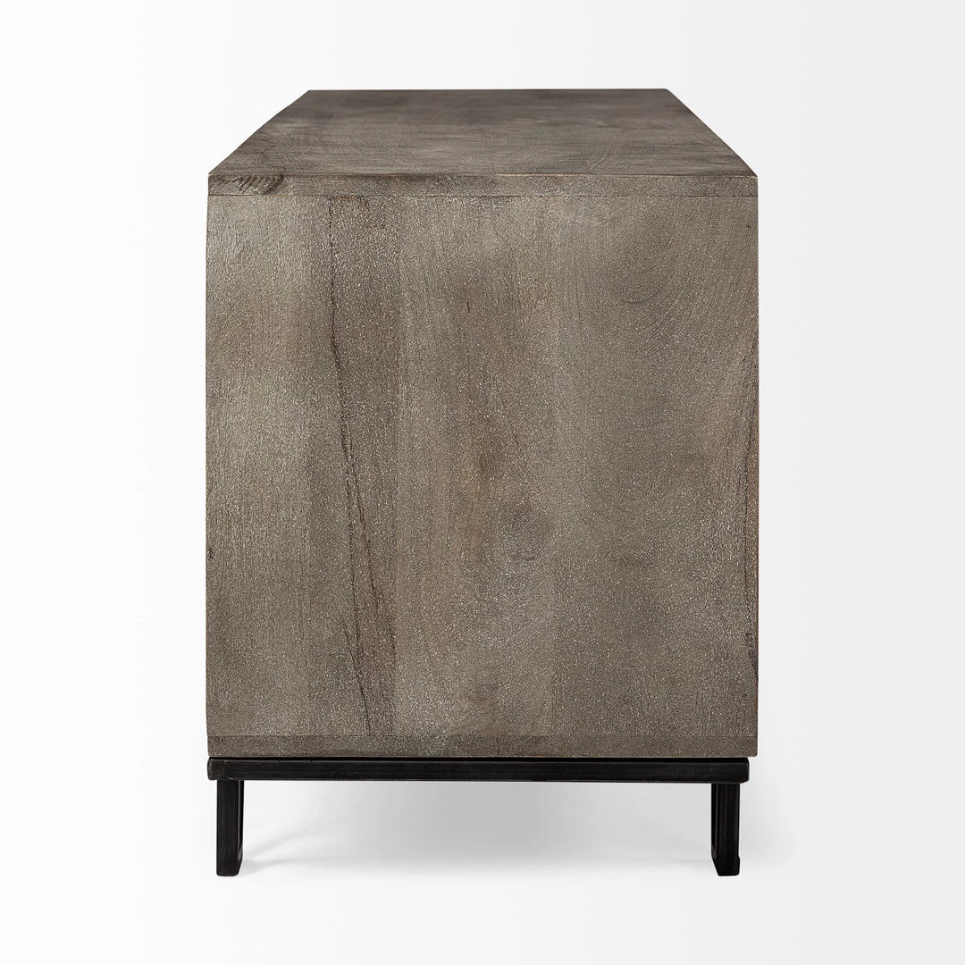 A TV cabinet from the Argyle series, the Argyle II features intricately hand-crafted wooden door panels mounted onto a sturdy black metal frame. The Argyle II has four doors and a small media shelf to accommodate all entertainment accessories and a TV as big as 75” in size.