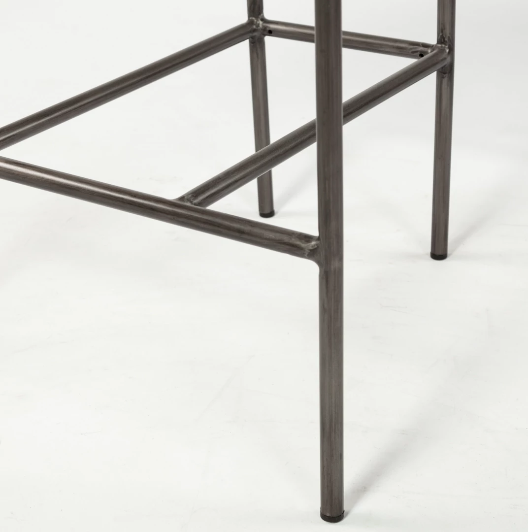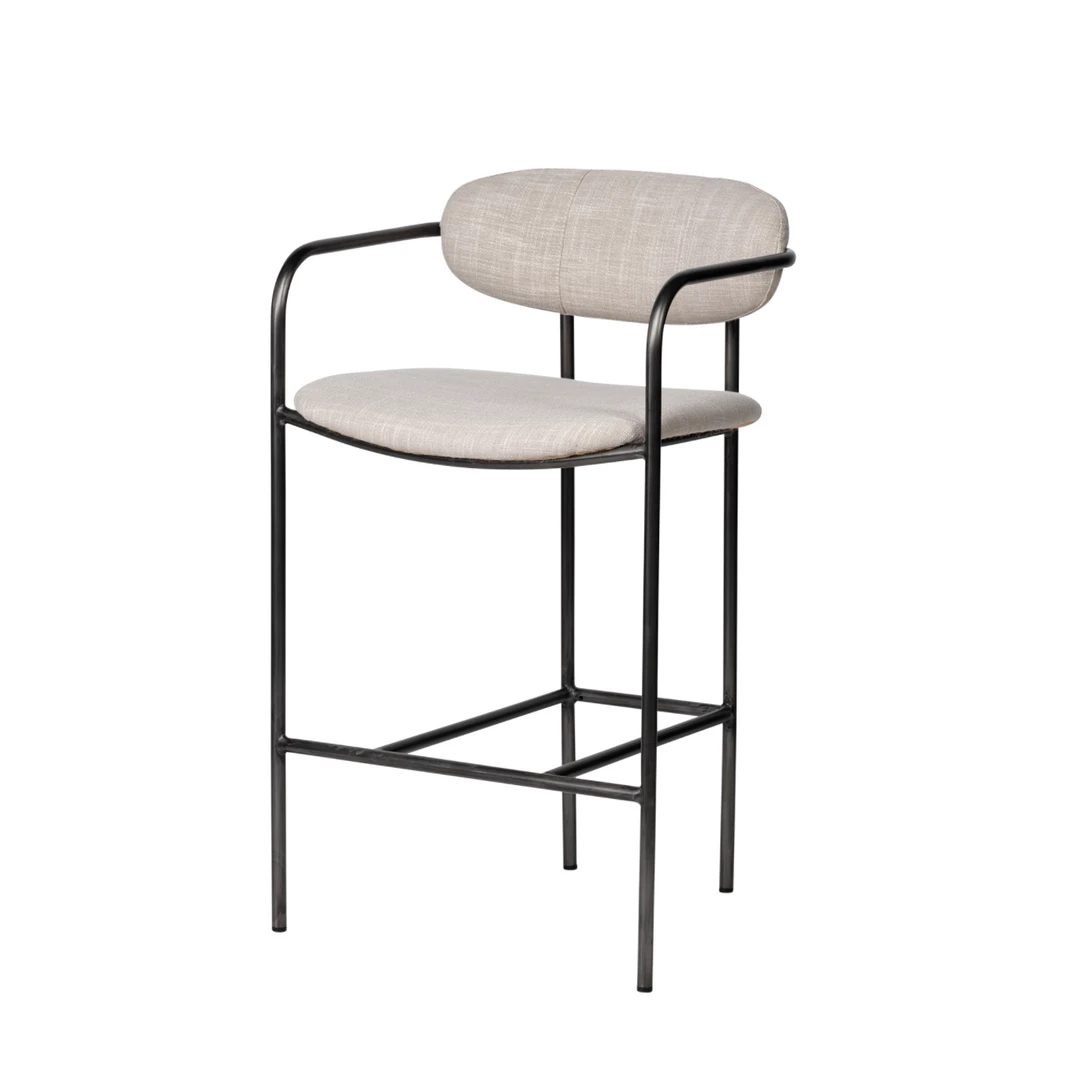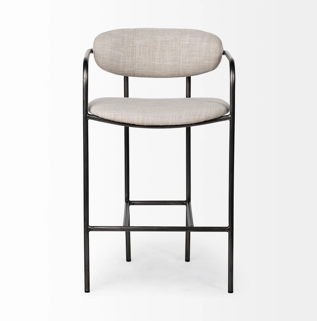 The Parker is a spectacular counter-height chair that features a beige, fabric-covered seat and backrest mounted on a sleek, gun metal grey metal frame. The frame on the Parker II is molded such that it extends to provide armrests and a footrest, resulting in exceptionally comfortable seating experience. The combination of beige upholstery on a metal frame looks stunning.