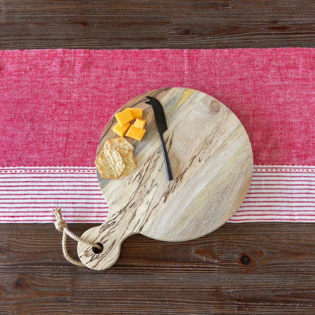 A staple of any farmhouse kitchen, the pale, beautiful wood of this small round cutting board makes it almost too beautiful to use. Also great for entertaining, this piece does double duty as a cheese board.