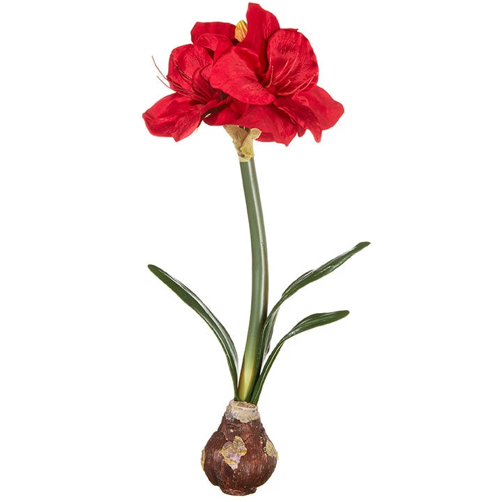 Amaryllis Bulb Stem has a weighted bottom in the bulb to make this flower perfect for arranging. Layer in a pot or on a tablescape to create a farm to table feel.