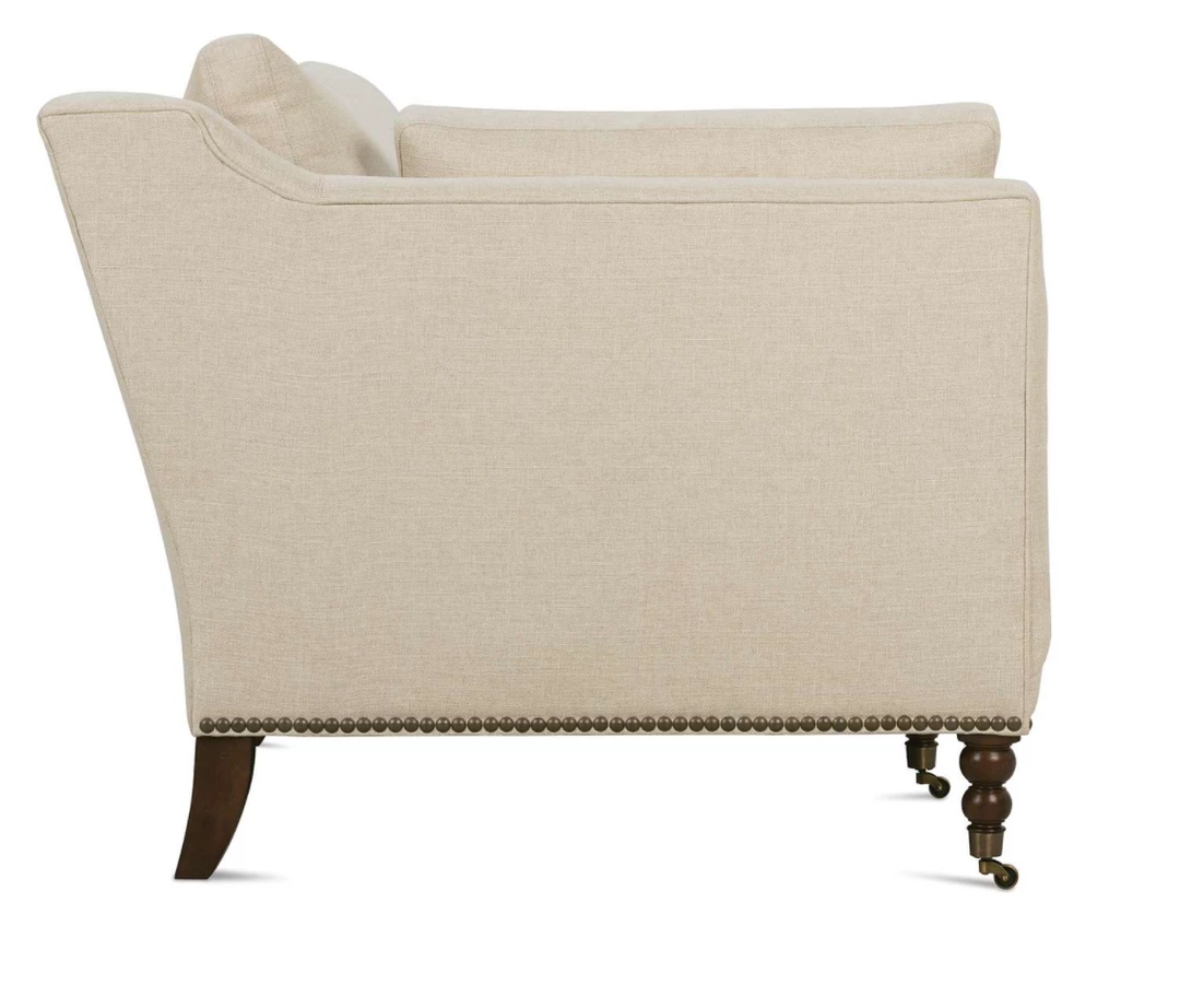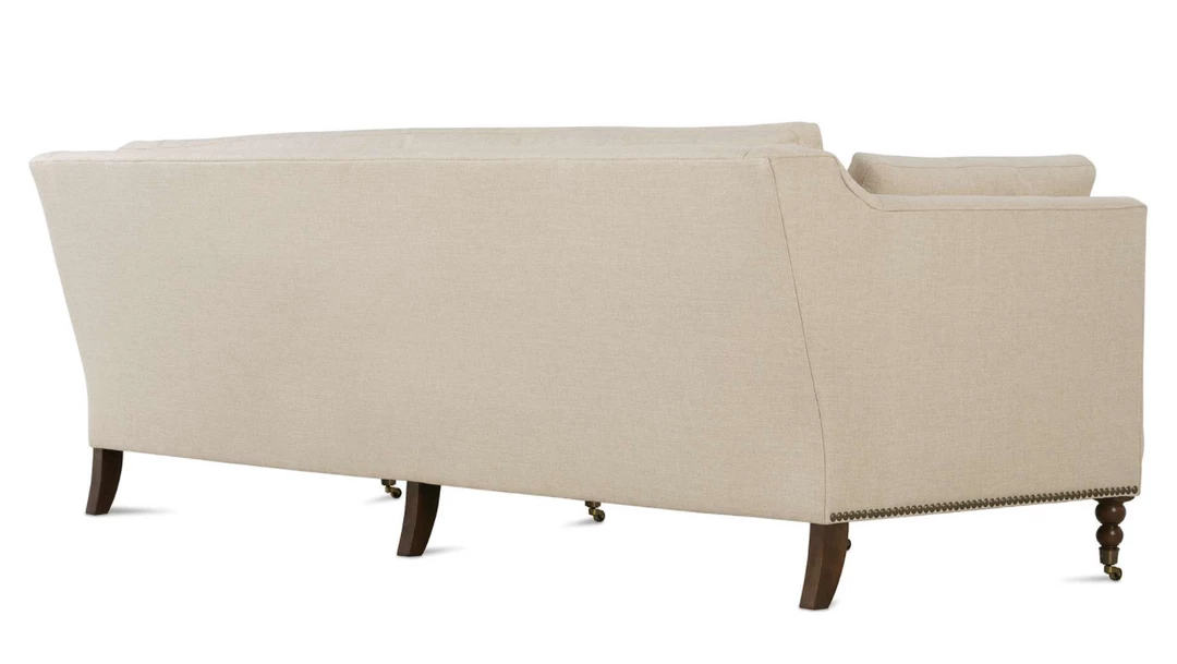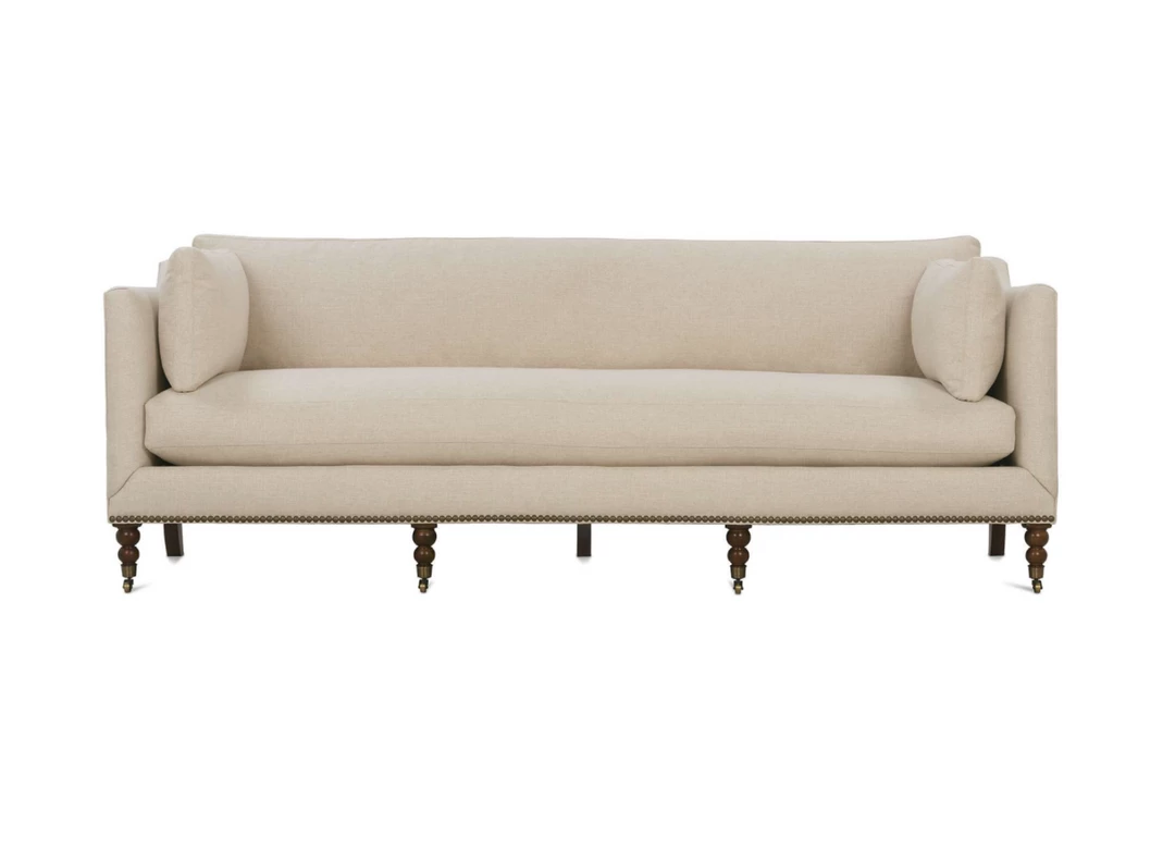 NOTE: *Bolster pillows are available in contrasting fabric. **This sofa is standard with metal casters in either Brass or Pewter. You MUST specify the caster finish when ordering. -IF nails ARE NOT stated on the order, then the piece will be produced without nails. -IF nails ARE ordered, you MUST specify the nail finish: Brass or Gold (comes with Brass Casters); ewter or Black Nickel (comes with Pewter Casters).