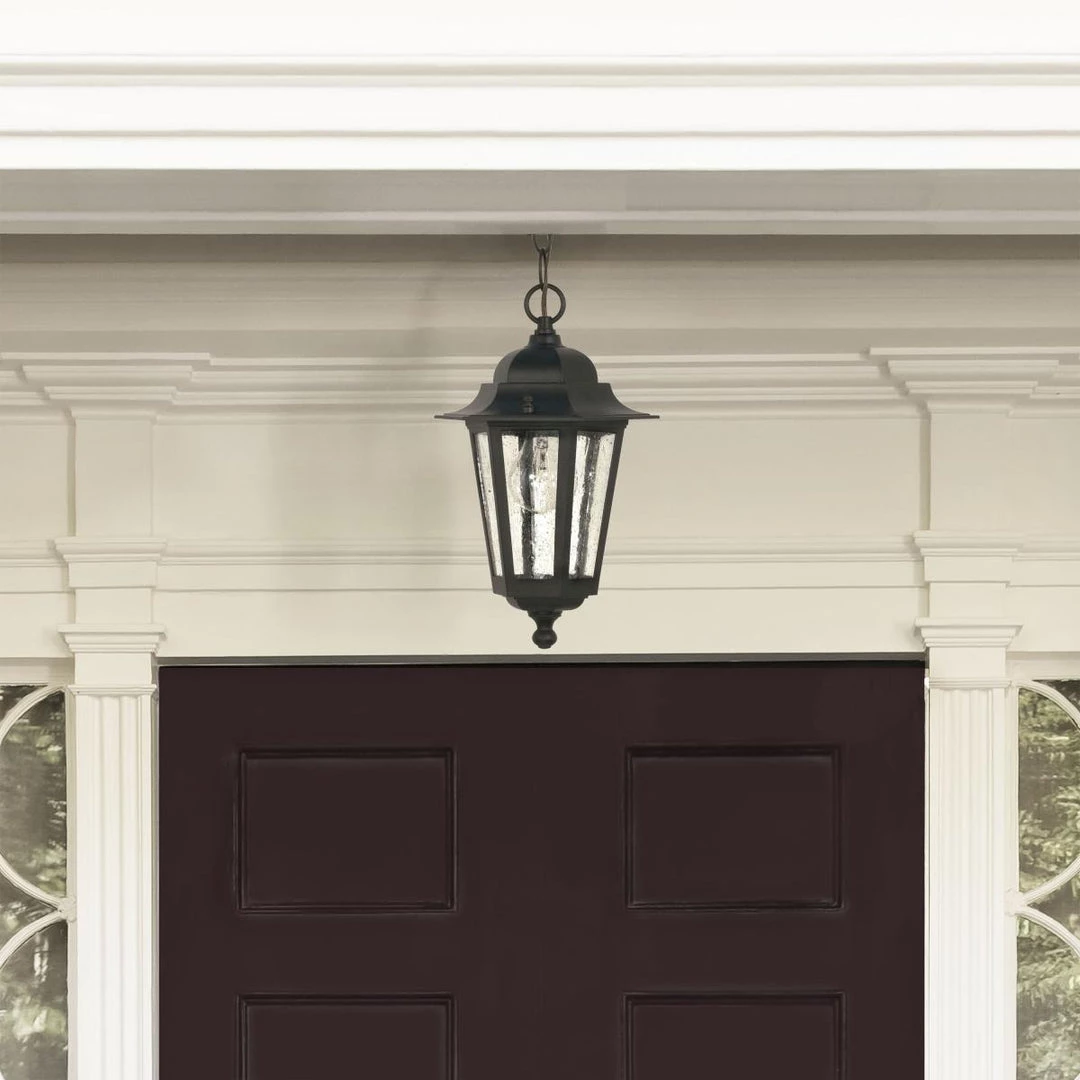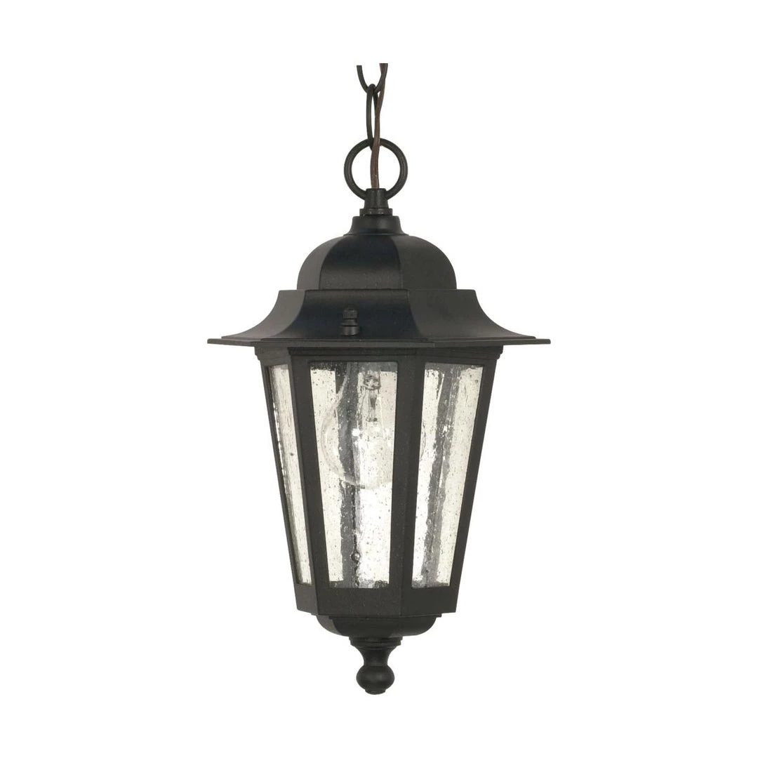 1 Light 13″ Hanging Lantern with Clear Seeded Glass – Textured Black Finish