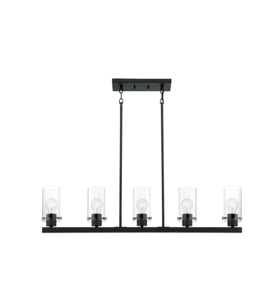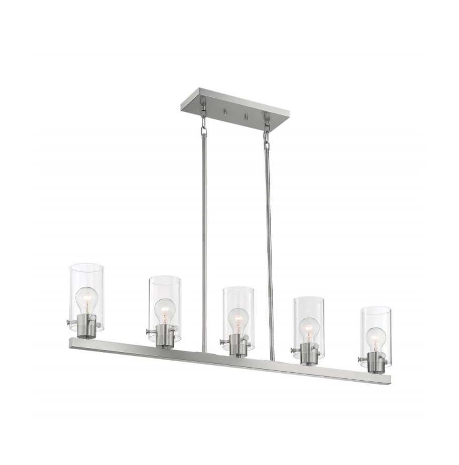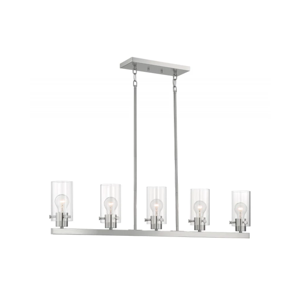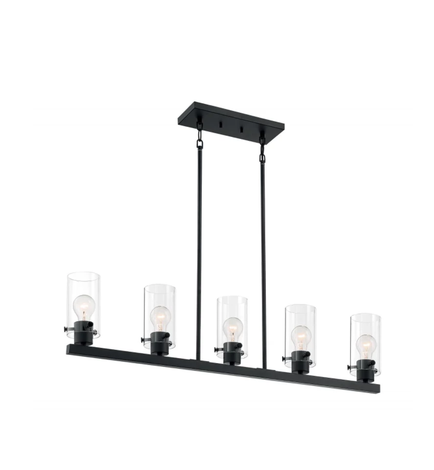 5 Light Island Pendant with Clear Glass – Matte Black or Brushed Nickel