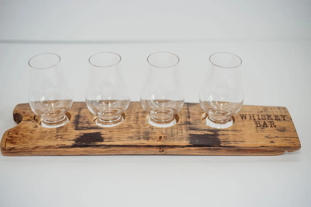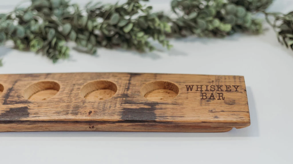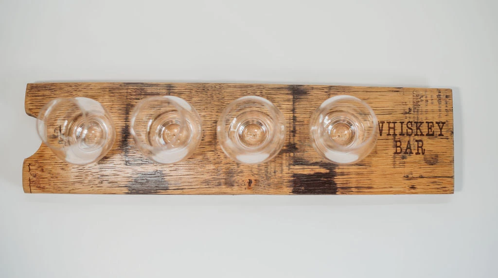 Handcrafted in Arkansas Ozarks, this whiskey tasting flight is made from upcycled whiskey barrels from Kentucky to California. Each one is unique and hand branded with “Whiskey Bar”. 18″ long x 4″ Wide