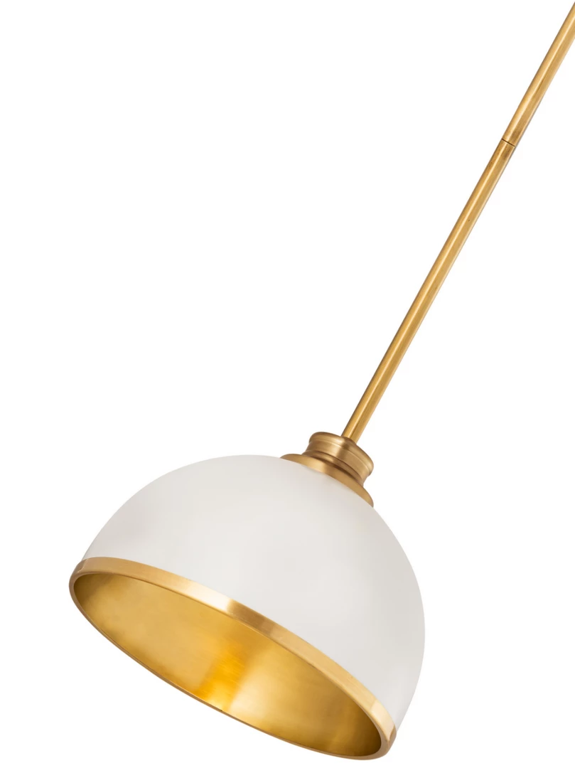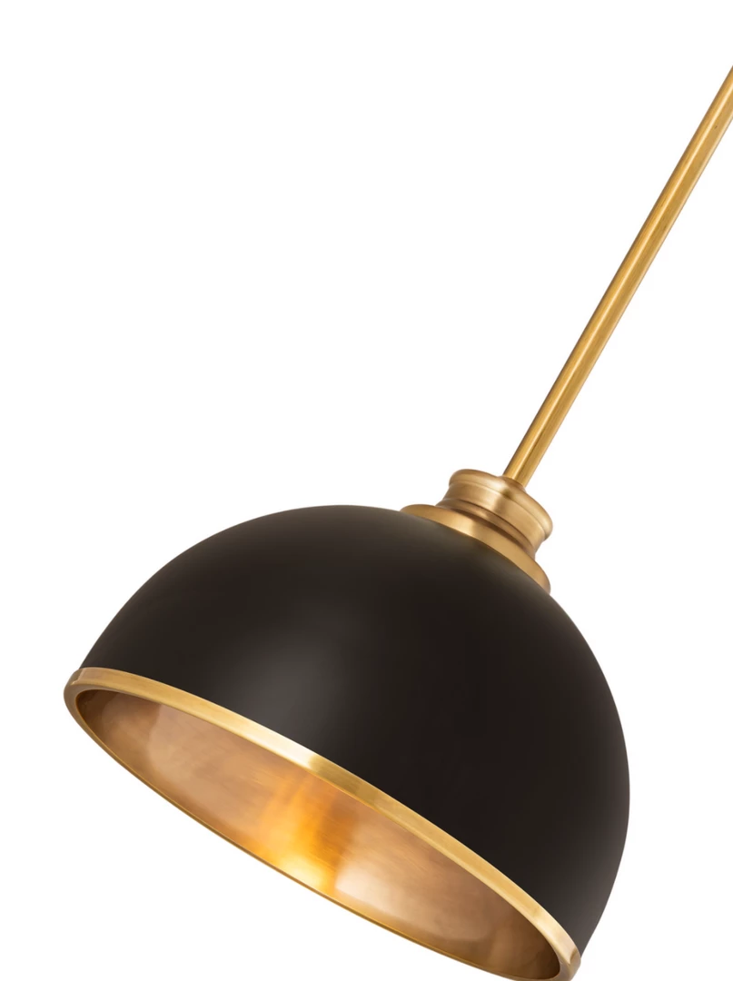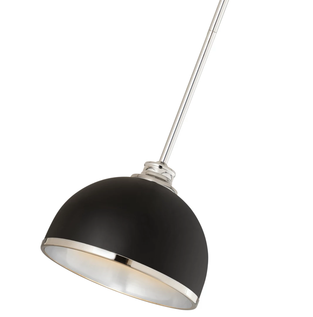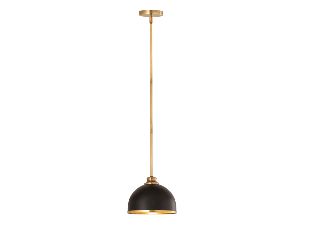 Easy elegance follows this domed metal one-light pendant with a crisp industrial influence and minimalist silhouette. A domed shade fashioned of matte black finish stainless steel is trimmed in warm rubbed brass finish metal with a rubbed brass finish down rod and canopy. This contemporary pendant is adaptable to a variety of décor schemes including farmhouse, modern industrial, and urban modern.