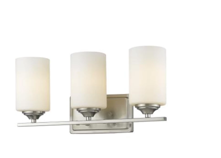 The circular base and the waterfall arms of the Deanna is modernized by the soft matte opal shades which is paired with brushed nickel fittings.