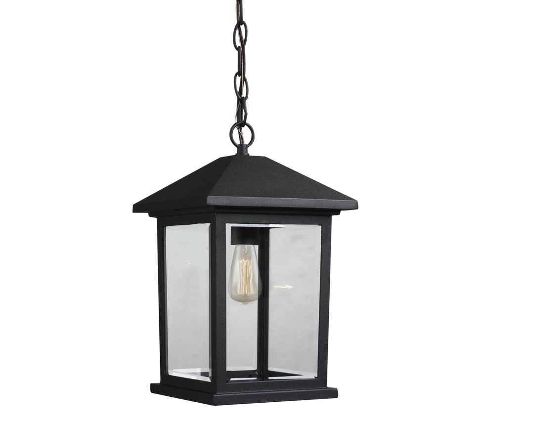 The timeless, mission styling of the Evan displays clean lines to suit both contemporary and traditional decors. Clear beveled glass paired with black comprised of cast aluminum which withstands nature’s seasonal elements.