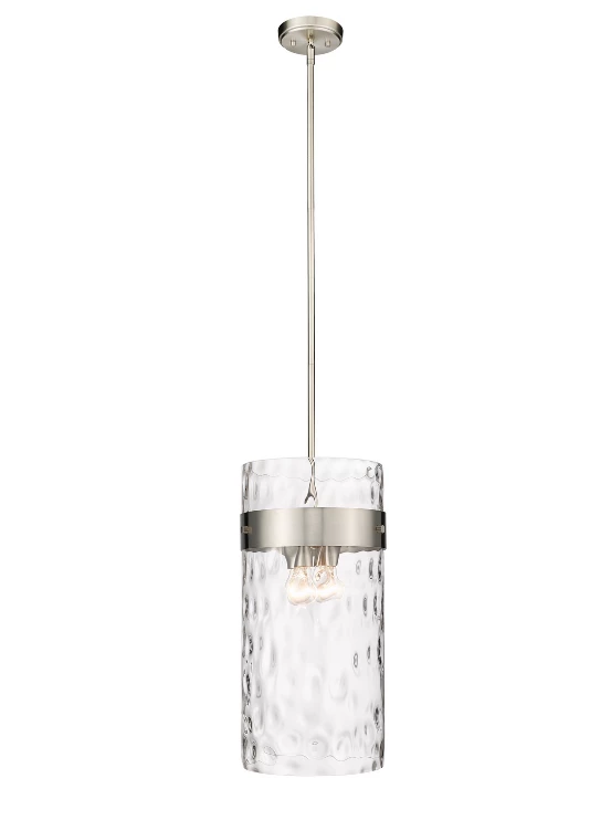 Suspend an alluring four-light pendant fixture from your kitchen ceiling for an aesthetic display. Featuring a cylinder glass shade with a lovely ripple texture, this piece is crafted from steel with a polished nickel finish.