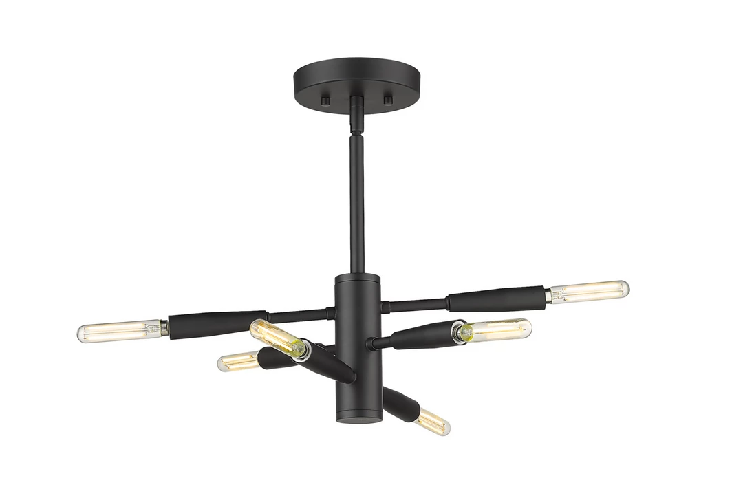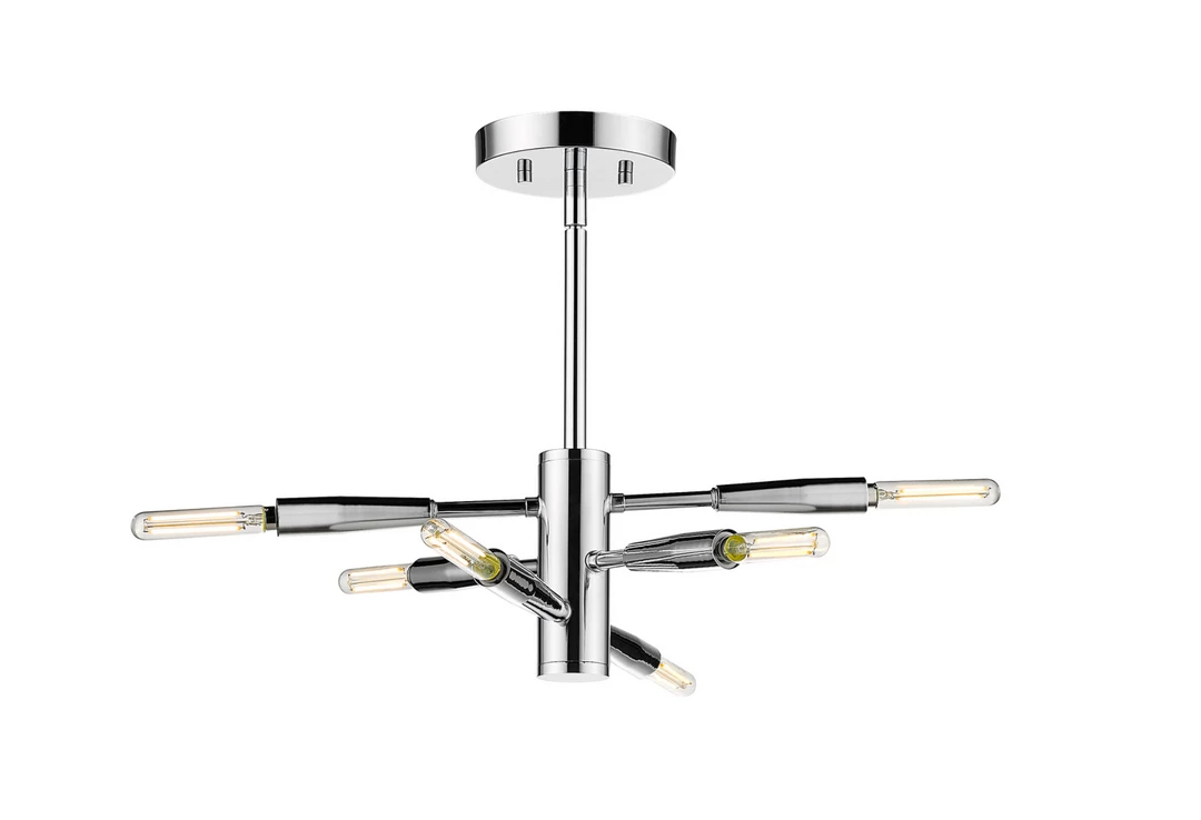 Step into a futuristic vibe as you choose illumination for your modern living spaces. This six-light semi-flush mount ceiling light from the Jasper collection delivers a sleek modular look with baton-style arms that rotate to a customized position. Made of bold matte black or chrome finish steel, this inspiring fixture may be further personalized with the custom optional bulbs of your choosing.