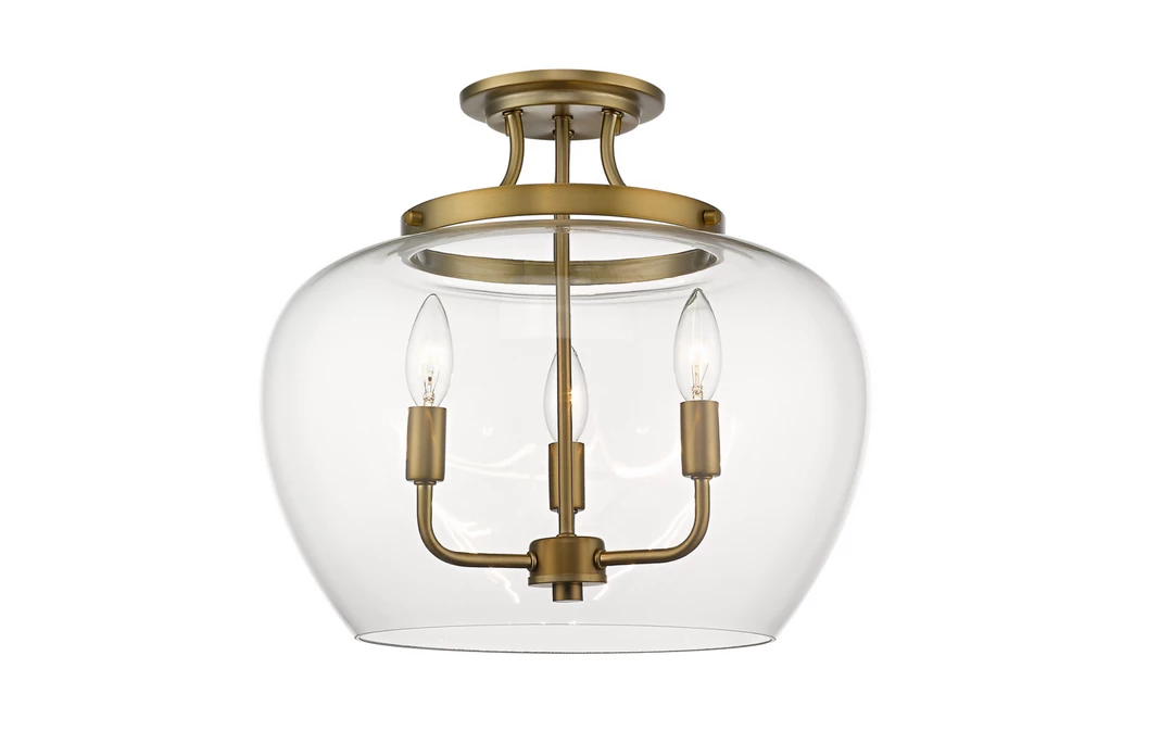 Designed with modern elegance in mind, this semi-flush mount ceiling light is a stunning home decor upgrade. Three lights beneath a clear glass shade are suspended from a sleek metal frame to create a magnificent display of light.