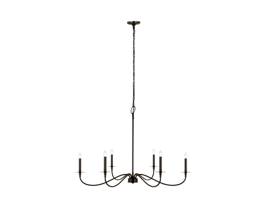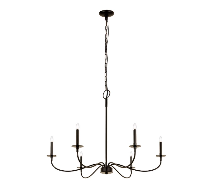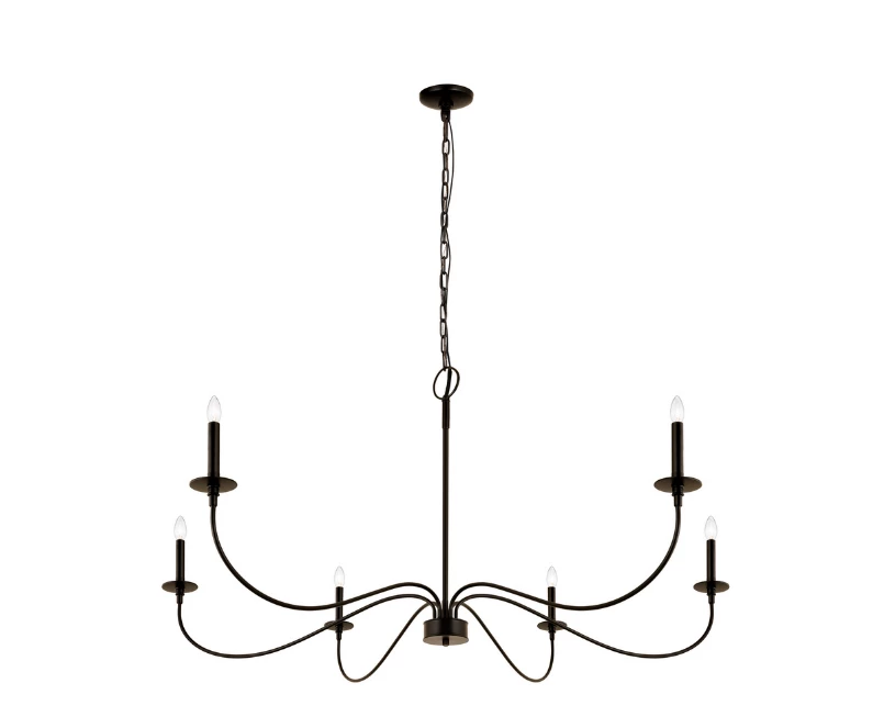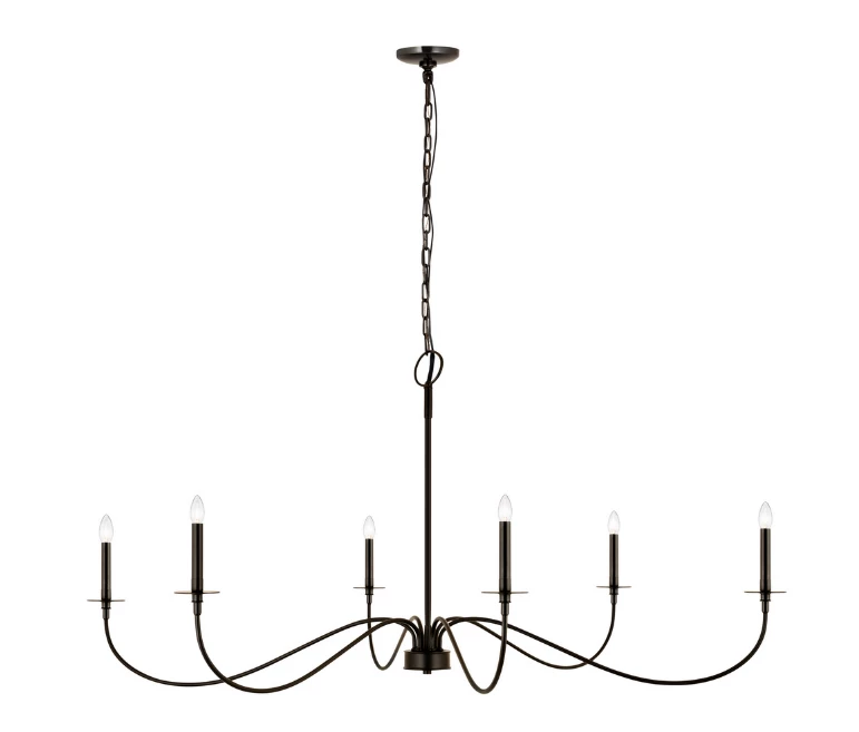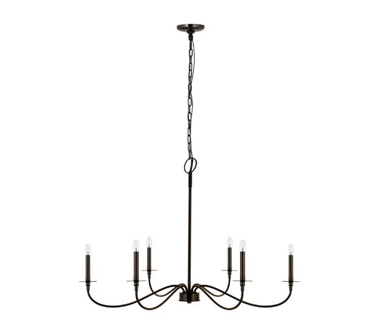 Bring romance to a modern or traditional kitchen, dining area, or main living space with this six-light chandelier from the Bridger collection. Crafted of bold matte black finish steel, its long, flared arms create a careful arrangement for placement of candelabra-style bulbs that borrow from a traditional motif.