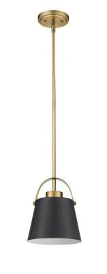 Incorporate design-forward illumination into a decadent contemporary décor scheme with this gorgeous one-light mini-pendant. Bring targeted lighting to a compact nook or reading space with a sleek fixture fashioned from Matte White or Matte Black and Heritage Brass finish o metal, with a classic angled shade.