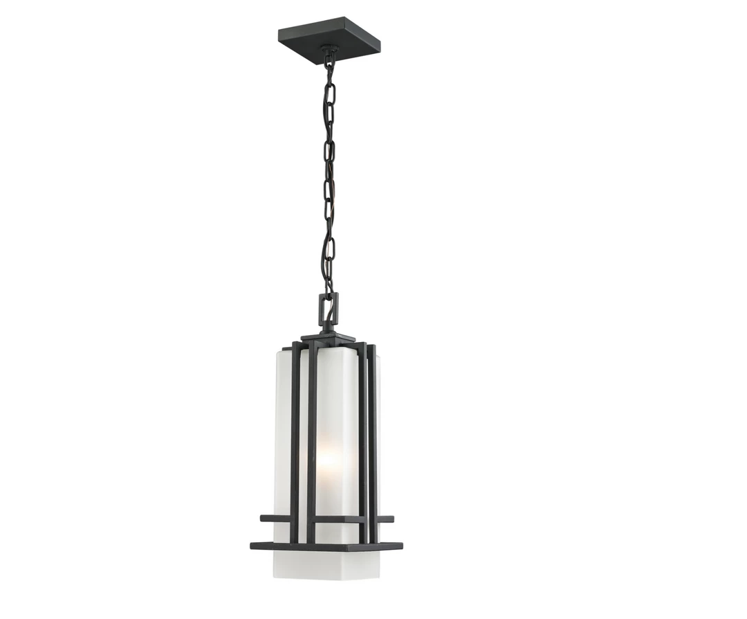 The geometric lines of the Talia combine well with contemporary home styling as well as homes in the craftsmen style. This medium chain light fixture is made of steel and finished in black with matte opal glass.
