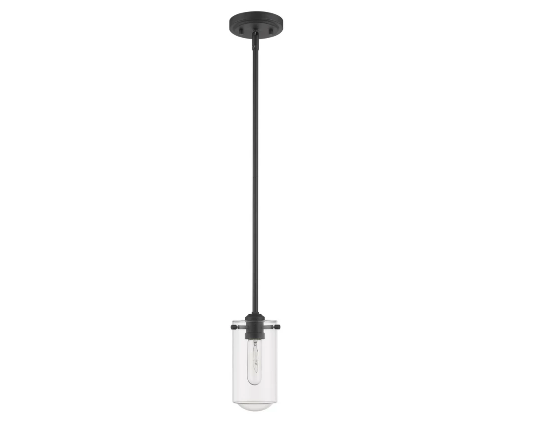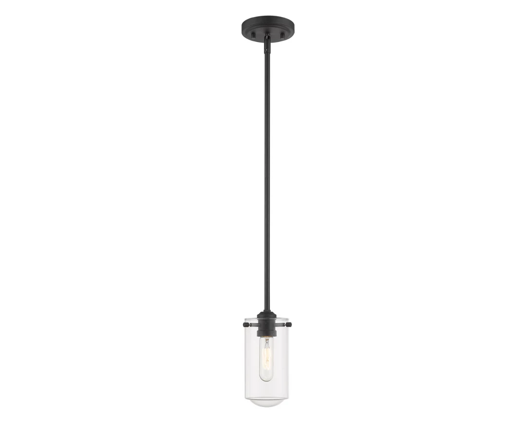 Clean lines and radiant metallic shine set this one-light pendant light apart from the others. Bright and modern, the elongated frame boasts a matte black or brushed nickel finish, streamlined with a clear glass shade.