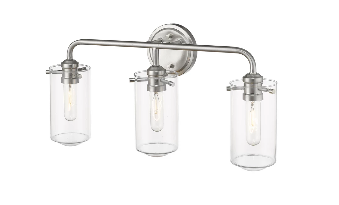 Beautifully designed and meant to add upscale flavor, this three-light bath light looks exceptional over a compact vanity in a guest bathroom.